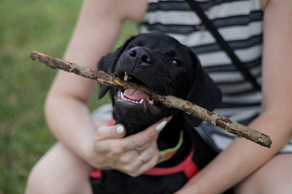 adoptowany 22.07.2021 – Lucky, to czteromiesieczny szczeniak po matce labradorce z papierami, ojciec nieznany , który został oddany do naszej fundacji bo jak twierdził właściciel- ” o zgrozo „sika, gryzie i skacze”.